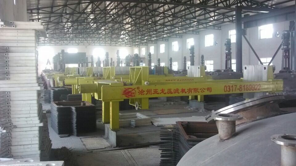 水分配管連接至煤泥壓濾機上方的兩個入口法蘭,從而使濾液進入煤泥壓濾機濾板上方的兩個分配管,并且分配管被濾板一一擠壓。 壓接在一起,并且在每個濾板的均勻方向上的一側,有一個通向濾板中心凹口的通道或凹槽。 這樣,來自濾板分配管的濾液被分成由濾板和板框組成的濾室。 實際上,土工膜制造商流入了由兩塊濾布包裹的板框。 當與濾布接觸時,在強烈的壓力趨勢下,過濾器中的液體也會通過濾布。 濾布僅允許液體通過,而固體被攔截并存儲在過濾室中。