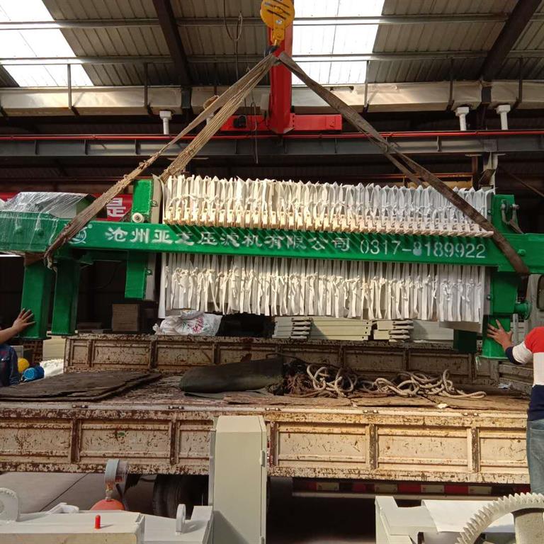 濾板少于規定數量會造成機件損壞;加料前還需檢查濾板排列情況,切記濾布不能有折疊現象,防止發生較大滲漏;卸餅后廂式壓濾機濾板_要緊靠壓緊排列整齊。