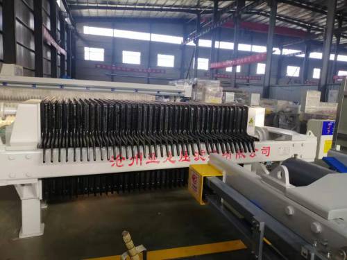 五氧化二釩及其他釩產品污泥的特殊性決定了污泥脫水設備的要求。鋼廠專用高壓污泥壓濾機采用高壓進料和高壓壓濾技術。進料采用液壓柱塞泵。進料壓力高達2MPa。進料后,液壓缸直接壓榨濾板進行壓榨。壓制壓力達到60-110kg/cm2,比普通隔膜機高6-10倍。由于高壓,水可以快速分離,工作周期比普通壓濾機短2-4倍。此外,該機器具有較高的自動化水平。電控系統采用PLC可編程控制器模式,觸摸屏操作面板,可自動送布、壓布、卸布、清洗濾布。濾布清洗依靠壓縮空氣而不是水,按工作順序自動完成,節省了普通壓濾機工作時人工卸料和人工清洗濾布的順序,省工省力,一人可同時操作兩臺設備